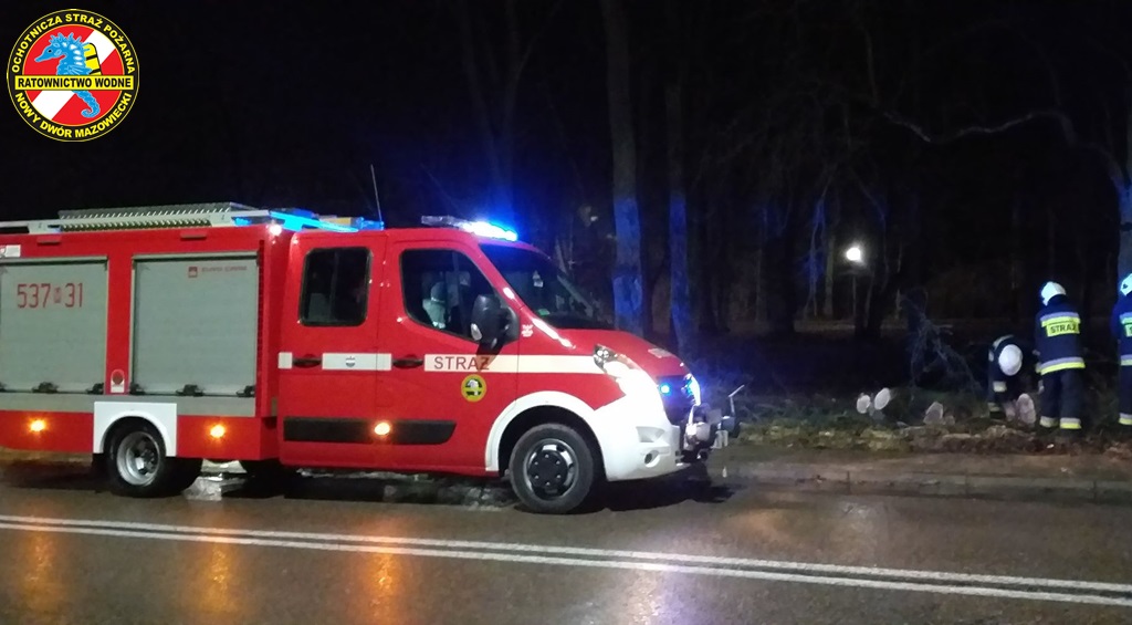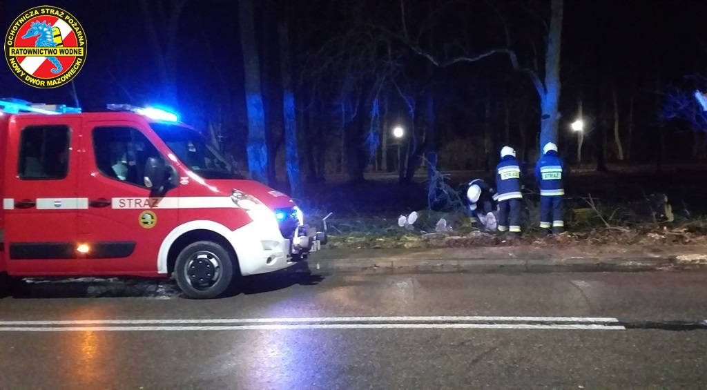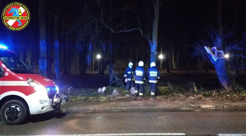 Podczas kolizji na moście na rzece Narwi, druhowie zabezpieczali miejsce zdarzenia oraz przystąpili do usuwania pojazdów z przeprawy mostowej. W Modlinie Twierdzy na ul. Ledóchowskiego, interweniowaliśmy do konaru drzewa który przewrócił się na chodnik. Nasze działania polegały na pocięciu drzewa na kawałki i usunięciu zagrożenia z chodnika.