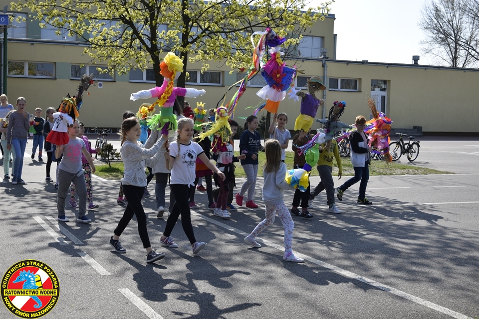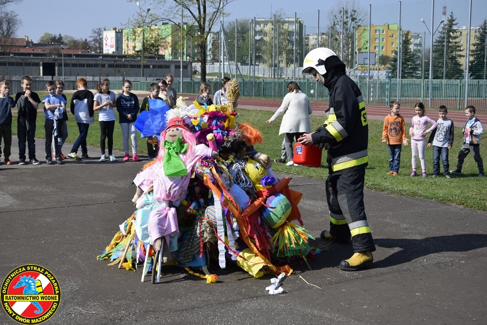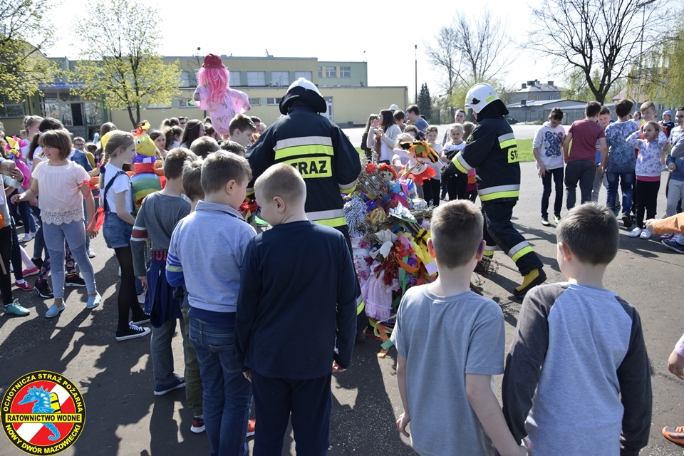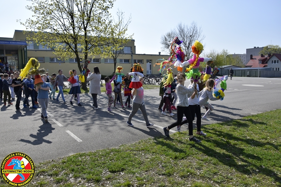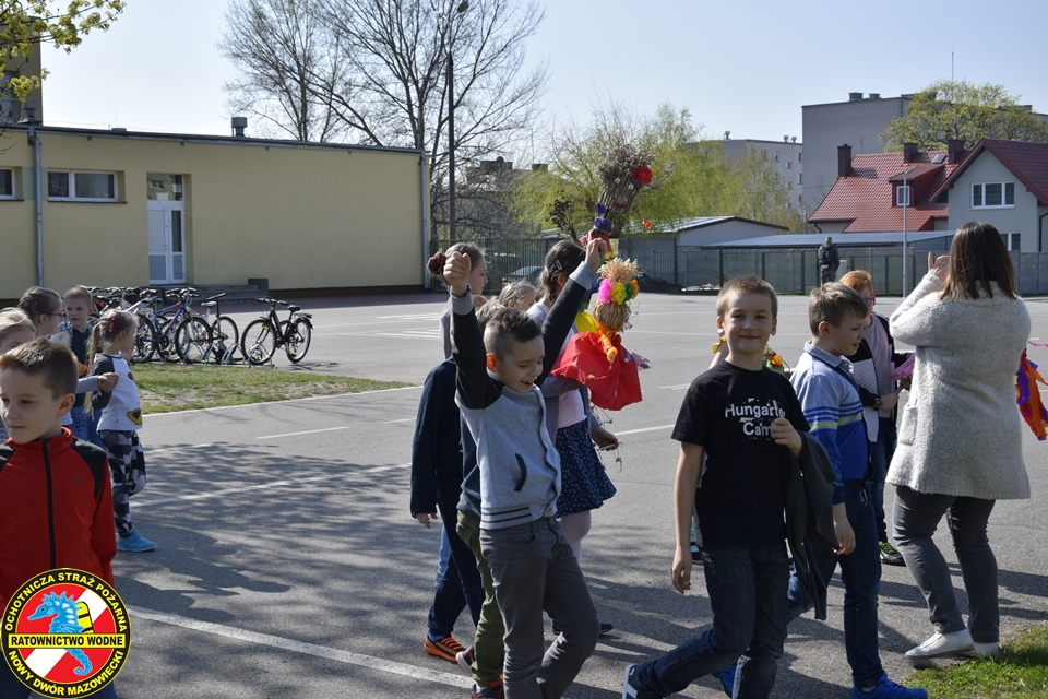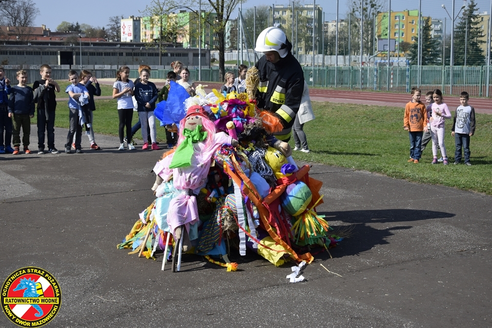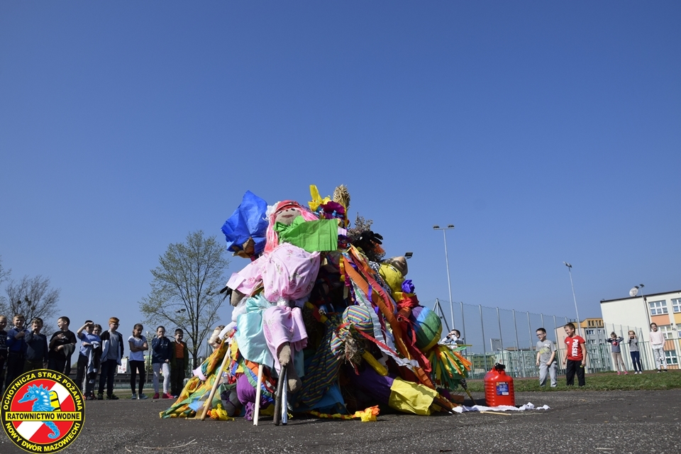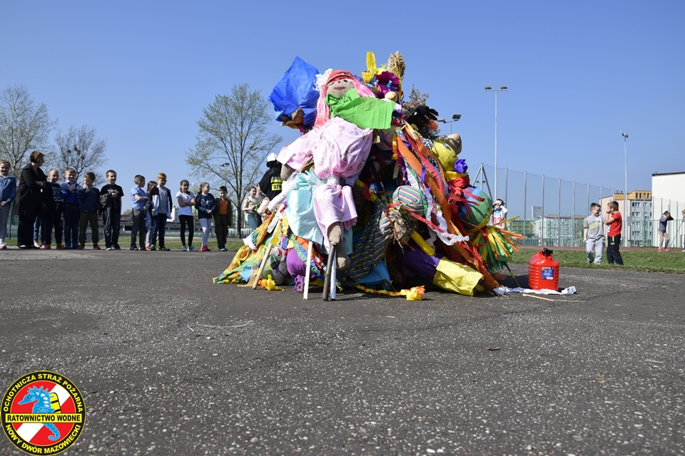 W poniedziałek 10 kwietnia udaliśmy się do Szkoły Podstawowej nr 5 w Nowym Dworze Mazowieckim na zaproszenie Stowarzyszenia Przyjaciół Piątki, gdzie zabezpieczyliśmy akcję palenia marzanny na pożegnanie zimy i powitanie wiosny.