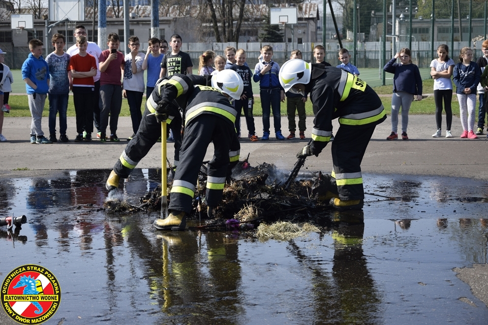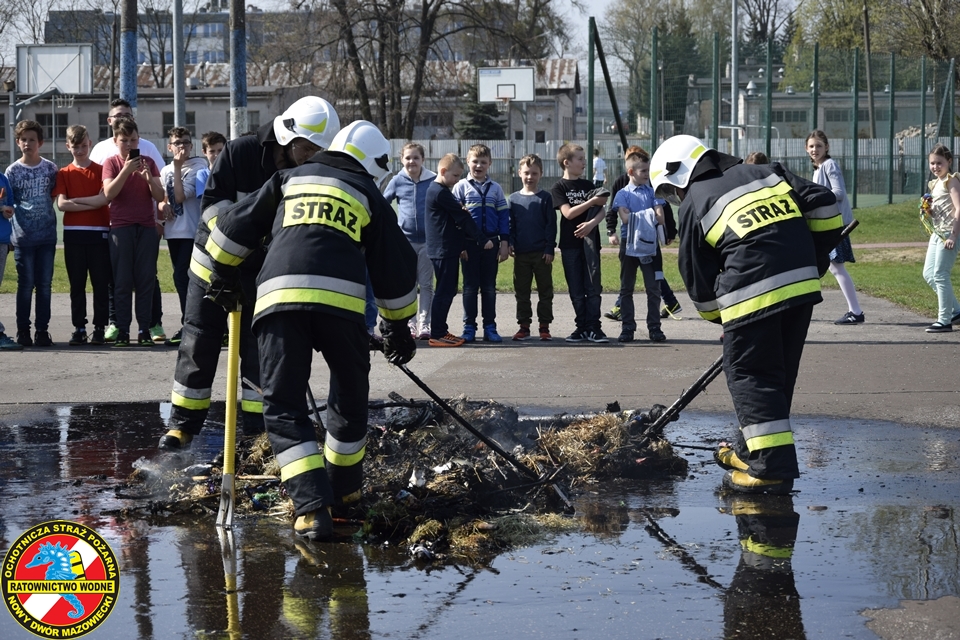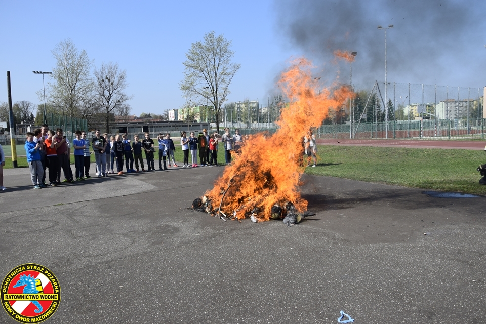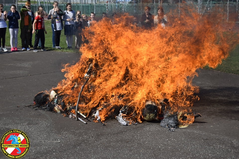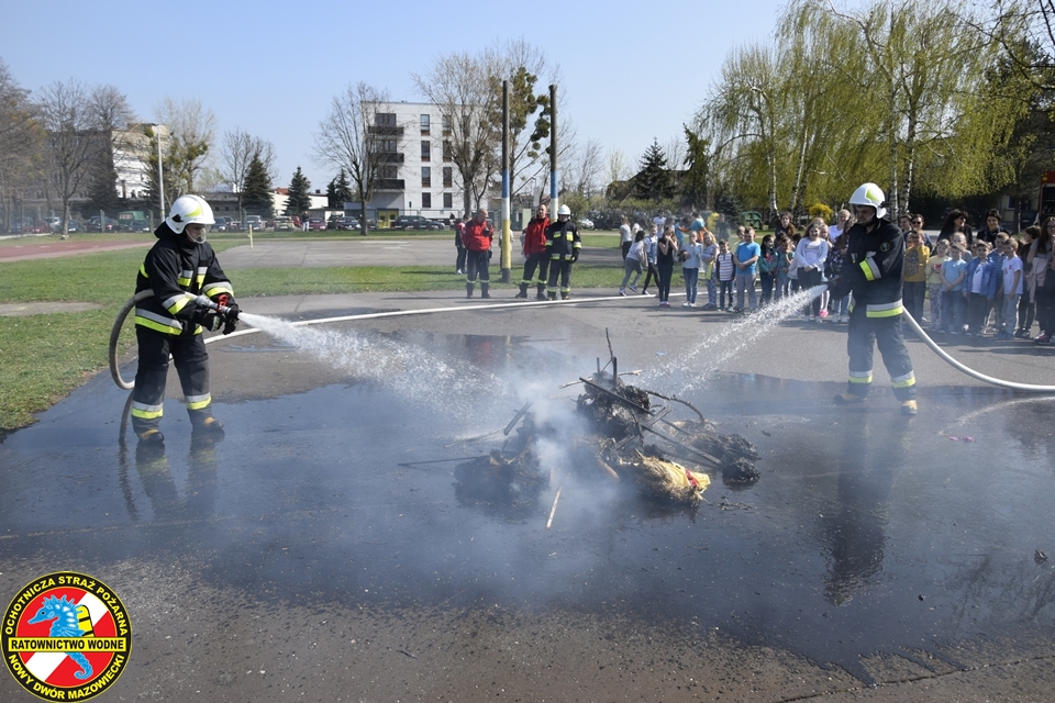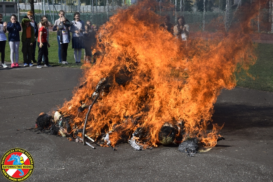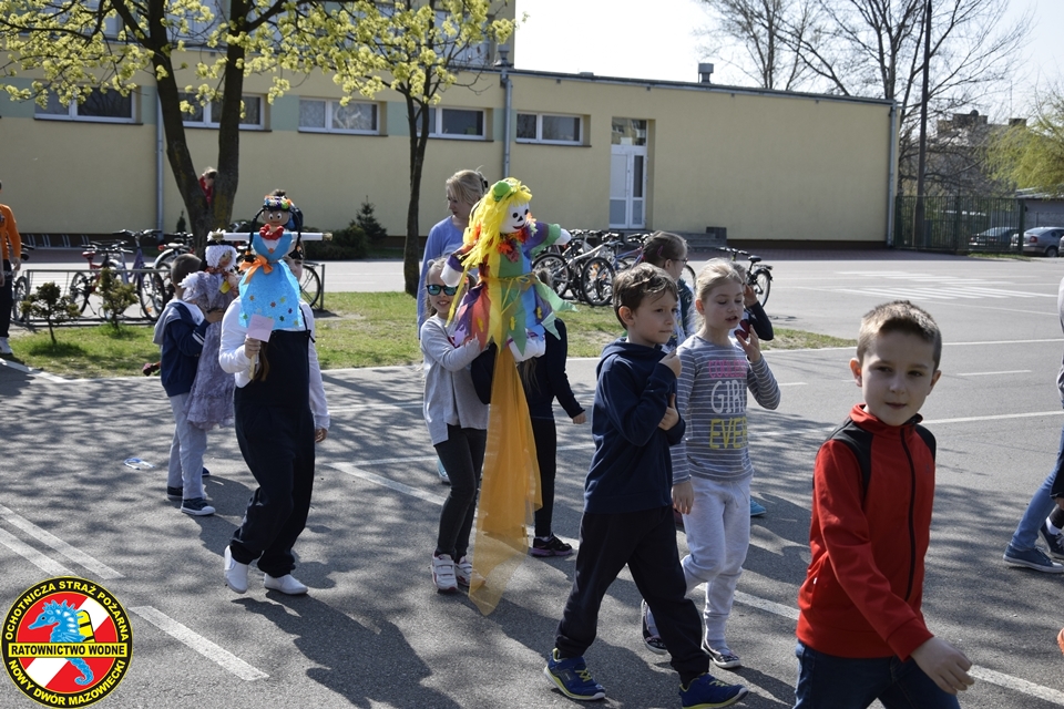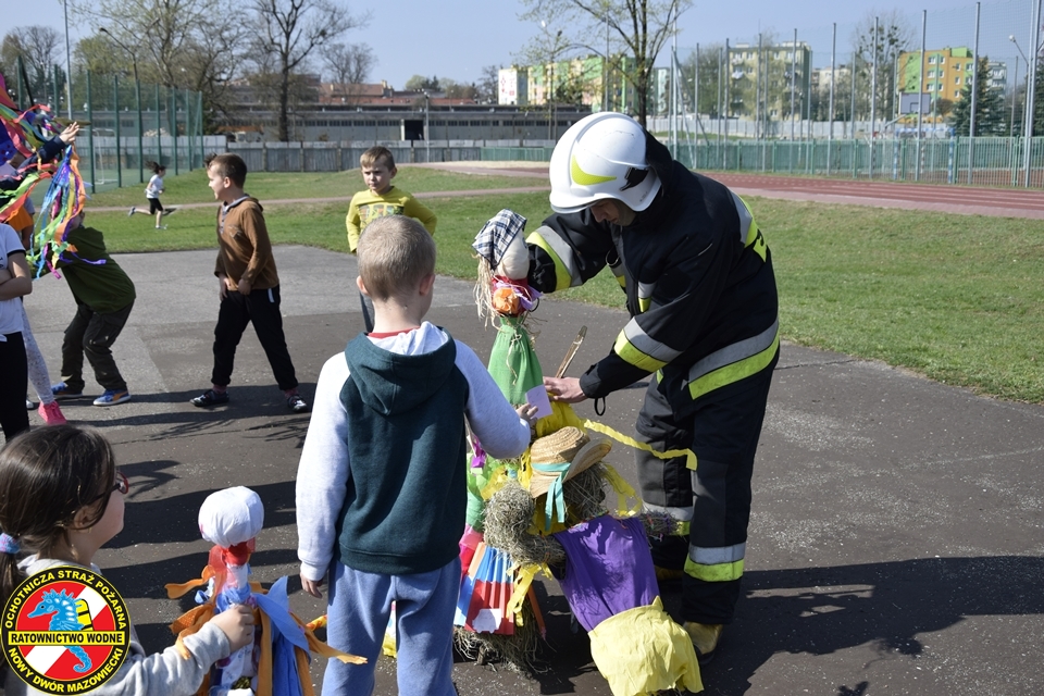 W poniedziałek 10 kwietnia udaliśmy się do Szkoły Podstawowej nr 5 w Nowym Dworze Mazowieckim na zaproszenie Stowarzyszenia Przyjaciół Piątki, gdzie zabezpieczyliśmy akcję palenia marzanny na pożegnanie zimy i powitanie wiosny.