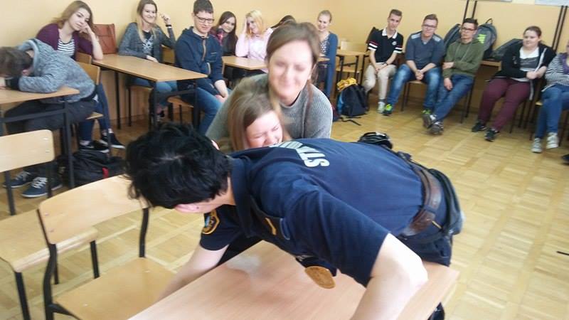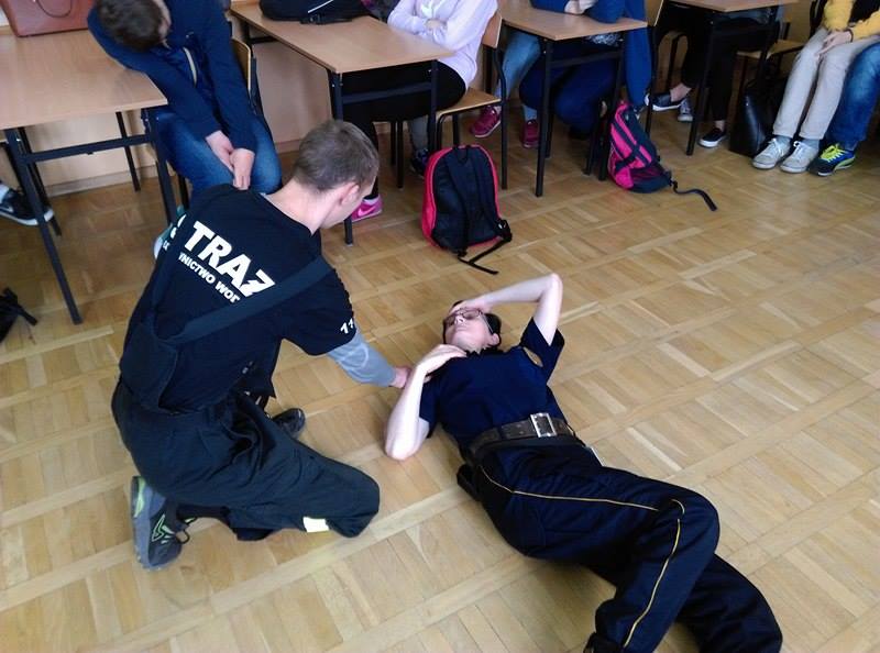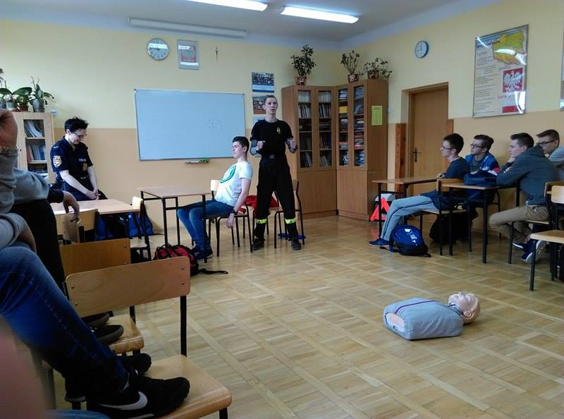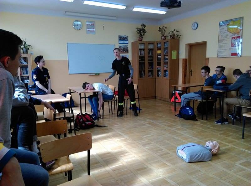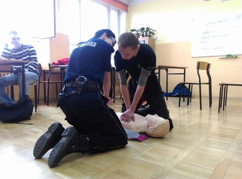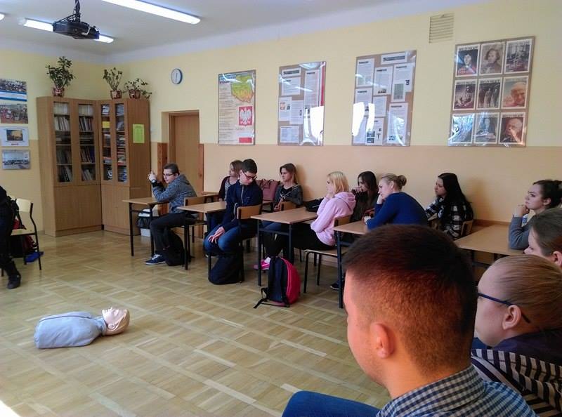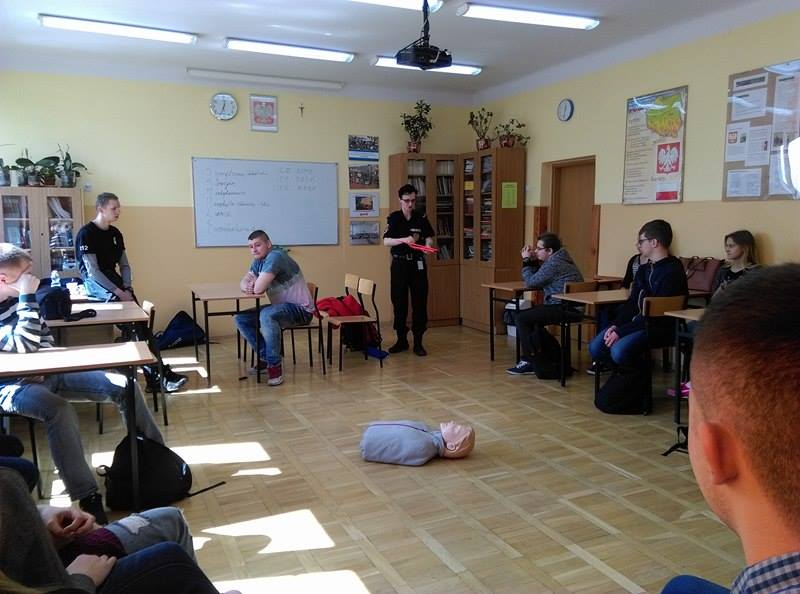 Podczas pogadanek oraz zajęć praktycznych uczniowie poznają zasady udzielania pierwszej pomocy osobie poszkodowanej w skutek wypadku drogowego. Młodzież może na fantomie poćwiczyć prowadzenie resuscytacji krążeniowo – oddechowej.
